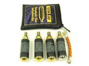 Each of these four threaded steel canisters contains 16 grams of CO2 gas. In just a few seconds 8-9 lbs. of inflation is discharged into your tire. The valve adapter has solid brass fittings and is re-usable. ATVs, dirt bikes and small utility vehicles will use 1-2 cartridges to fill a tire. Larger scooters and motorcycles will use 3-4 Co2 cartridges to fill a tire. Ships via UPS Ground to the lower 48 states only.